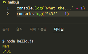 숫자로 된 문자열이 아니라면 NaN으로, 숫자로된 문자열에 숫자를 빼면 계산해버리는 식으로.