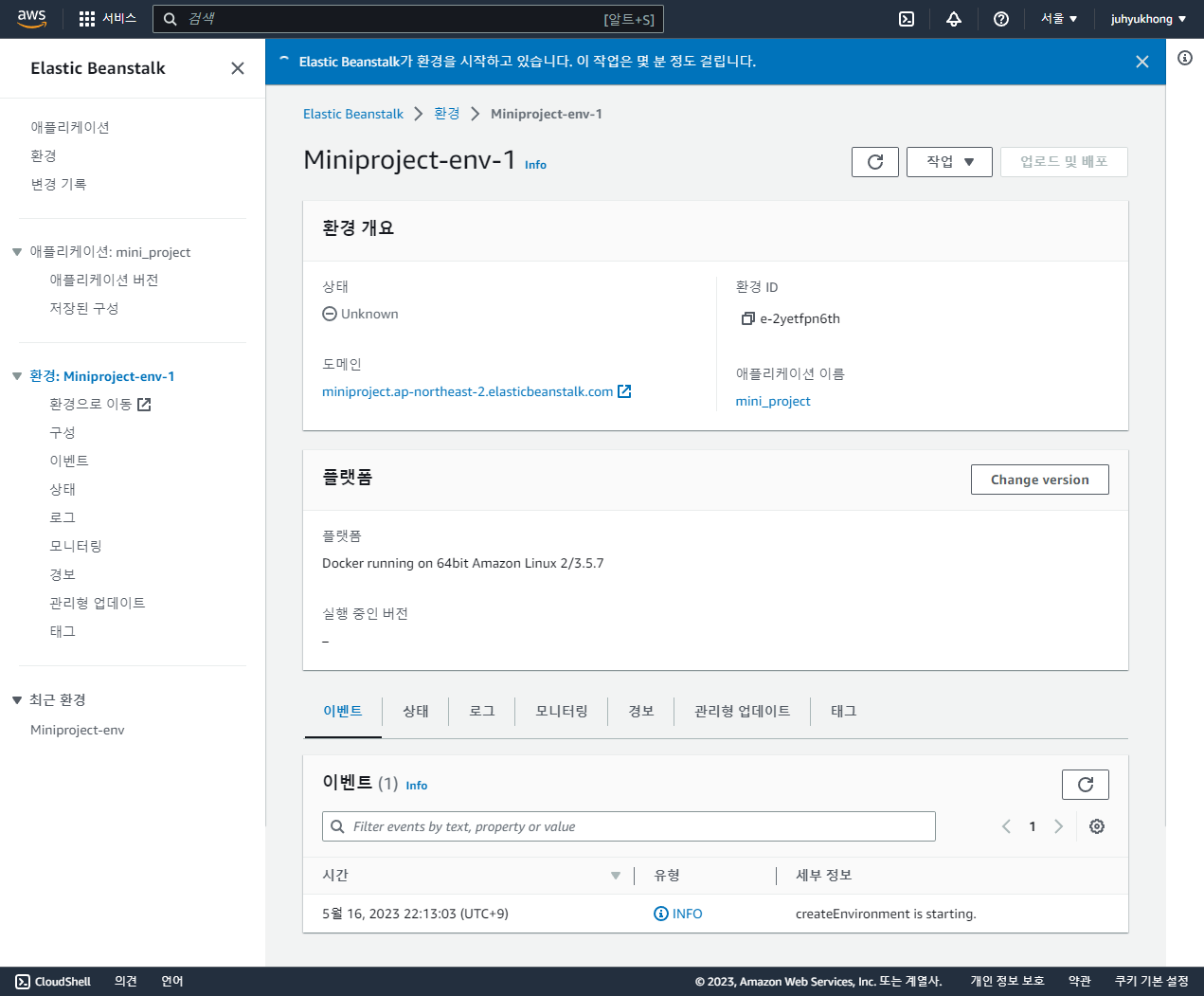 AWS에서 EB라고 검색하면 나온다. 설명대로 쉽게 배포할 수 있긴 한데, 늘 그렇듯 어떻게 쓰는지에 대한 자료가... 어딘가 있겠으나 내눈엔 잘 안보인다.