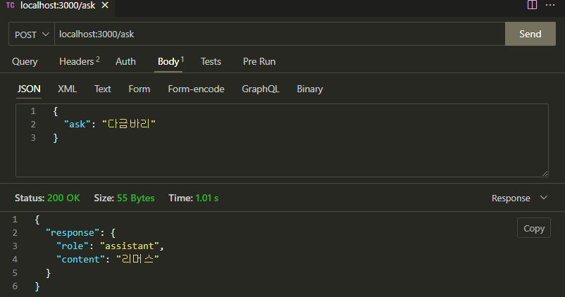 openAI에서 제공하는 API를 연결하는 것은 openAI에서 제공하는 기술문서에 친절하게 설명되어 있어서 파이썬으로는 기술문서를 따라 쉽게 연결했었는데 node.js로는 어떻게 하는지 기술문서를 보며